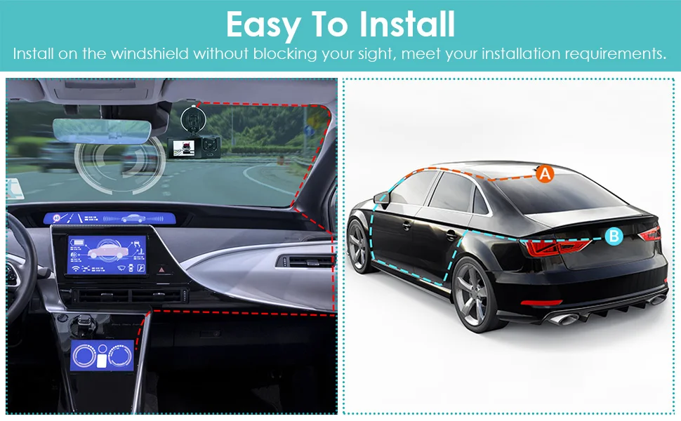 A nova câmera de painel de alta definição com 2/3 lentes possui suporte WiFi integrado para conectividade Android iPhone, facilitando a visualização de vídeos no seu telefone.