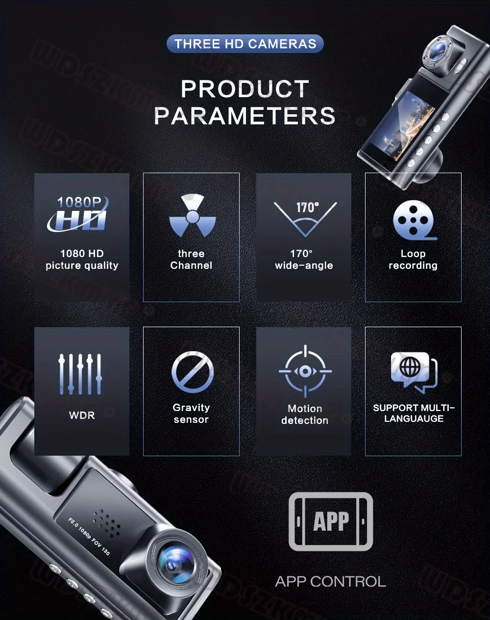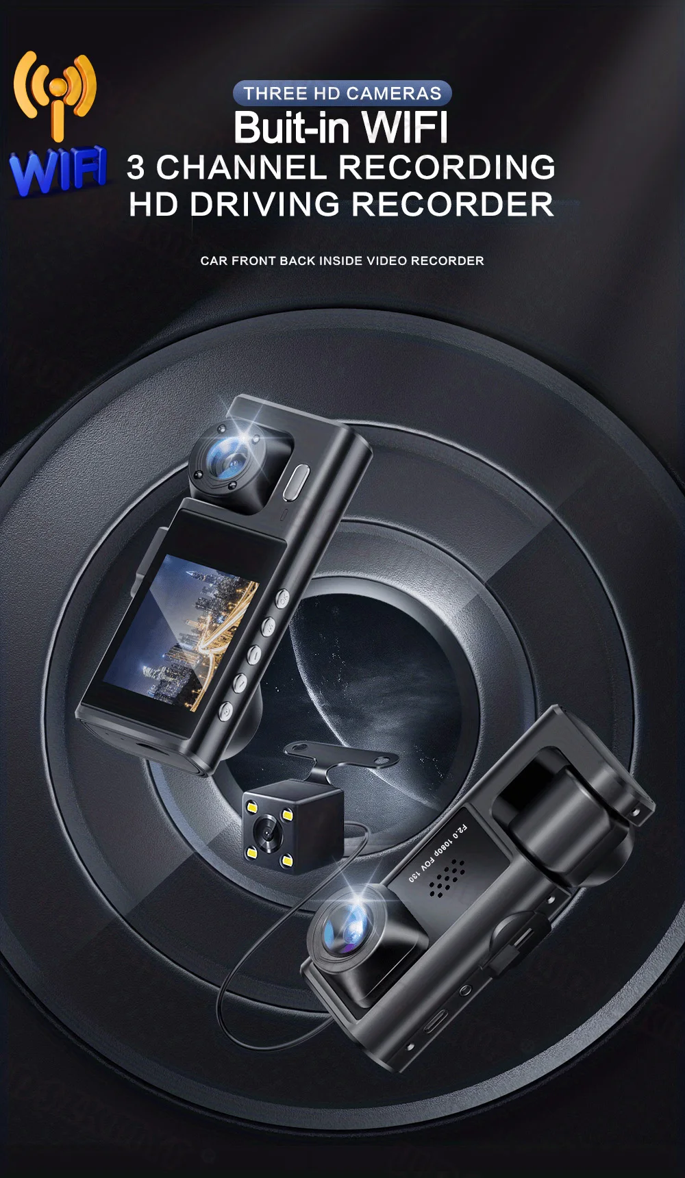 Nova câmera HD 3 lentes WIFI Dash