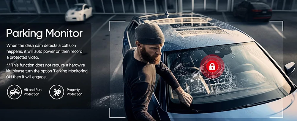 Quando alguém se aproxima do seu carro ou veículo e ele começa a se mover, o dispositivo liga automaticamente e começa a gravar ao detectar qualquer impacto ou colisão. O dispositivo grava automaticamente por alguns segundos, garantindo vigilância 24 horas durante o estacionamento.